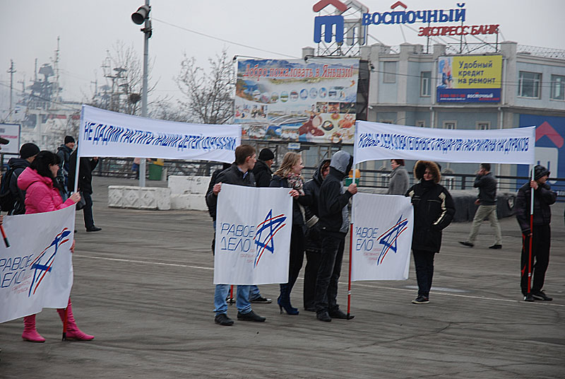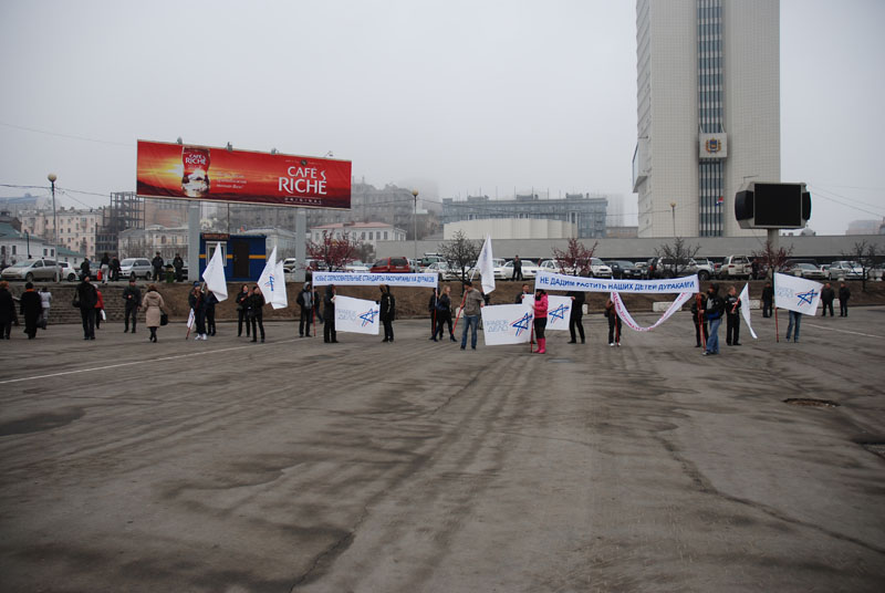 1 апреля 2011 года Приморское отделение партии «Правое дело» на Центральной площади Владивостока провело пикет «Правые против деградации образования».
