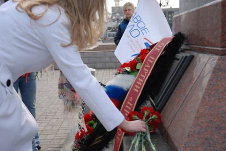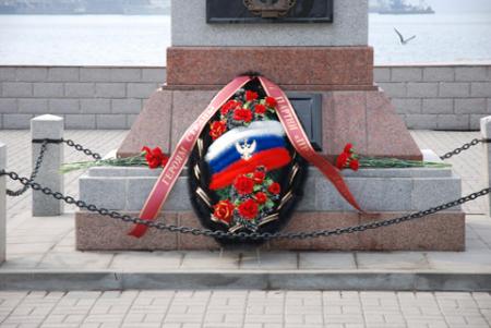 Члены регионального отделения партии "Правое дело" к памятнику морякам-подводникам на Корабельной набережной