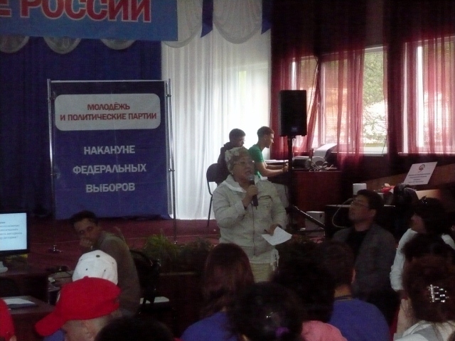 - Молодежные отделения не одной политической партий сегодня способны представлять интересы молодежи, кроме партии «Правое Дело». ЛДПР, по моему мнению, это партия, олицетворяющая бандитские, криминальные 90-е годы с их криминальными авторитетами, которых они пытались протащить во власть, коммунисты – это партия прошлого, спросите (обращение к молодежной аудитории в зале) у своих родителей, бабушек и дедушек, про 74 года правления коммунистов в России, когда жили только коммунистические вожди, партийная элита этой партии, а остальные люди были «все равны» и прозябали в нищете, Единая Россия – это настоящее, вы хотите жить в настоящем времени при этой правящей партии (обращение к молодежной аудитории в зале?), когда хорошо живут только чиновники и олигархи и имеет место лживая статистика, говорят, что средняя зарплата 20 тысяч рублей, а реально люди получают 8-10 тысяч рублей. Мы - новые демократы, либералы, правая партия, партия «Правое Дело» у власти в России в будущем - это ваше будущее (обращение к молодежной аудитории в зале). Мы - единственная партия, которая может защищать интересы молодежи. Правильно в этом зале, где сегодня идут эти дебаты на стене, на сцене написано «Наш выбор - будущее России!» Наш, Ваш правильный выбор, будущее России – это приход к власти либералов, партии «Правое Дело». «Наш выбор, выбор молодежи – будущее России, это партия «Правое Дело»! Мы партия «Правое Дело» поднимем уровень жизни народа в России до достойного уровня жизни сопоставимого с уровнем жизни в экономических развитых странах Европейского Союза, США и Японии через полномасштабное развитие малого бизнеса в России, через создание крепкого среднего класса в России, которое будет составлять большинство населения в России! Приход к власти партии «Правое Дело» - это не власть и процветание олигархов, чиновников, криминала, партийных вождей и элиты, это реальная власть народа в лице большинства, крепкого, многочисленного среднего класса – мелких и средних собственников, которых мы создадим из Вас (обращение к молодежной аудитории в зале).
