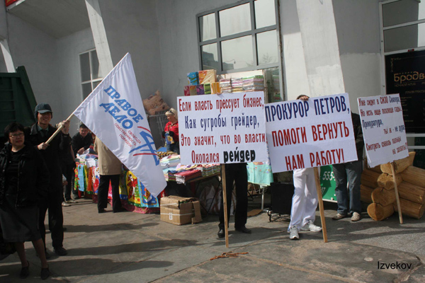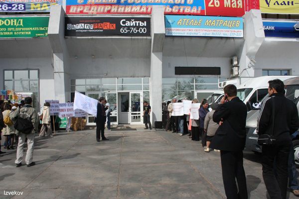 Пикет пришли поддержать предприниматели-арендаторы и руководство ЗАО Торгового дома «Юбилейный», скандал вокруг которого с каждым днем накаляется в Бурятии. Предприниматели-арендаторы и руководство «Юбилейного» потребовали от властей остановить рейдерский захват их бизнеса и предприятия.