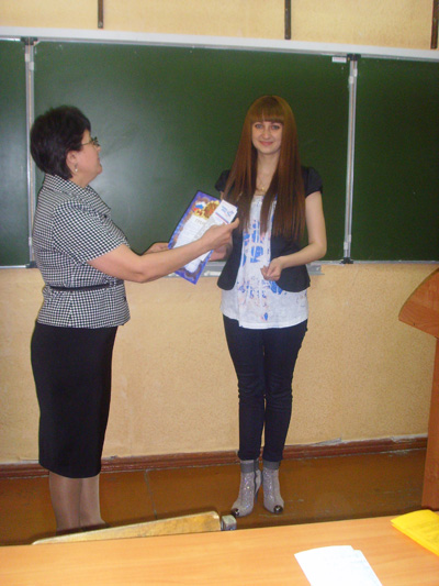 От имени регионального отделения партии Г.Горчакова вручила грамоты за аналитический подход к теме «Деятельность непарламентских политических партий в РФ» студенткам Е.Шадриной и В.Усовой.