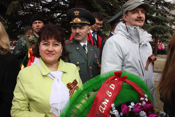 После орудийных залпов и салютов представители общественных организаций, партий, объединений ветеранов войны, тыла возложили венки и цветы к памятнику Воину-освободителю и Вечному огню. Региональное отделение партии «Правое дело» представляли и.о. председателя регионального отделения Андрей Тропман и председатель исполкома Галина Горчакова.