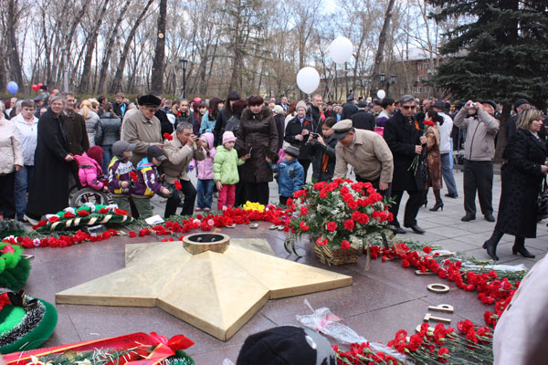 Несмотря на то, что день выдался холодным и пасмурным, с лиц ветеранов не сходили улыбки. Каждый третий житель Абакана был участником войны. Все абаканцы достойно воевали на полях сражений. Домой с войны вернулось несколько Героев Советского Союза, кавалеров Ордена Славы. Присутствовавшим на площади ветеранам дети дарили цветы. В небо взмыли воздушные шары.