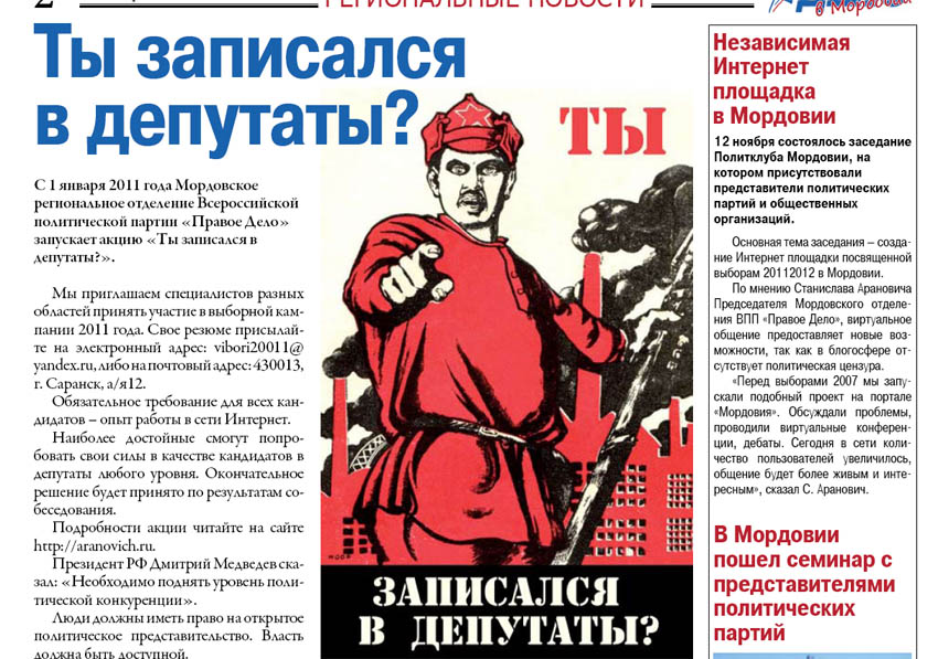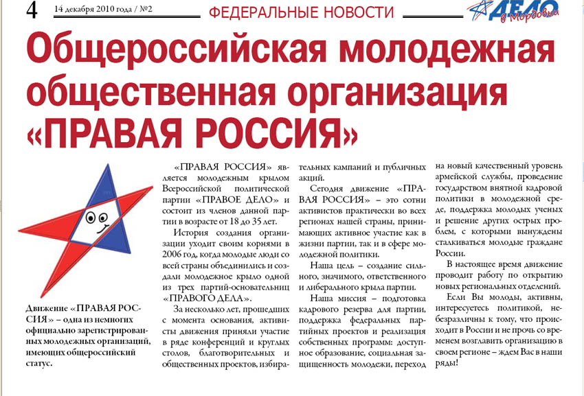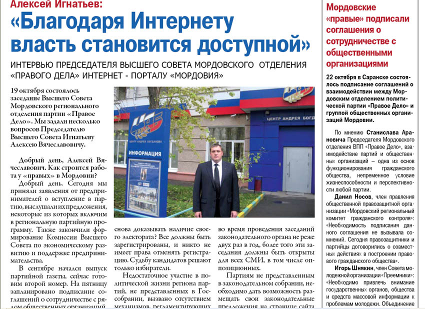 Республика Мордовия: Вышел в свет второй номер издания "Правое дело в Мордовии"