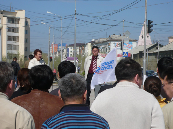 На митинге выступили председатель регионального отделения Вячеслав Шадрин, член регионального отделения политсовета, председатель Ассоциации женщин предпринимателей Якутии Галина Васильева, известный предприниматель Якутска Александр Скрипин, председатель Торгово-промышленной палаты Якутии Игорь Пахомов и предприниматель из Нерюнгри Иван Тихонько.