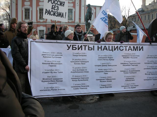 Санкт-Петербург: «31» октября 2009 года в Санкт-Петербурге в шестой раз состоялась общественная акция «Марш против ненависти»