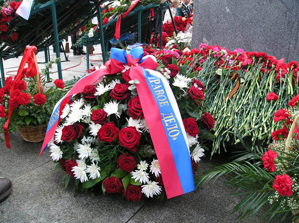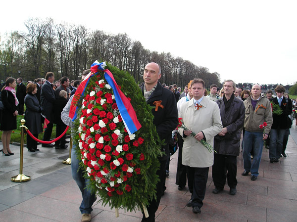 В этом году - году 65-летия Победы в Великой Отечественной войне - сама церемония проходила как-то более торжественно и скорбно. Более двух часов шел нескончаемый поток официальных делегаций.