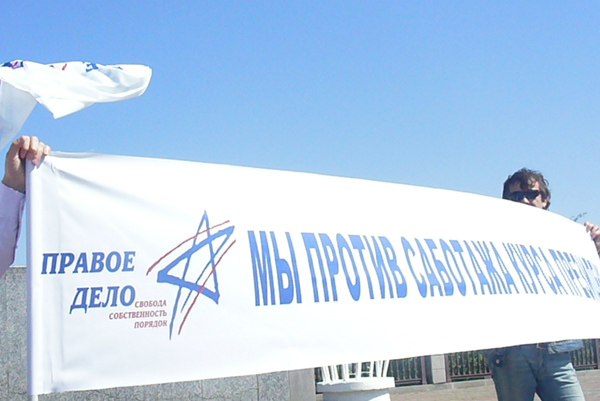26 мая 2010 года с 10.00 до 12.00 на территории Крепостной горы города Ставрополя региональное отделение «Правого дела» провело митинг, посвященный Дню предпринимателя. Лозунги митинга – «Мы за снижение тарифов», «Мы против саботажа курса Президента», «Мы против монополий предприятий».
