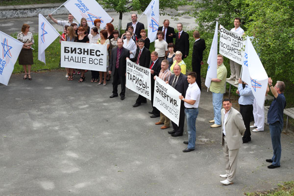 26 мая, в День российского предпринимательства, региональное отделение партии «Правое дело» в Свердловской области провело пикет в знак несогласия с политикой правительства в области налогообложения и тарификации энергоносителей.