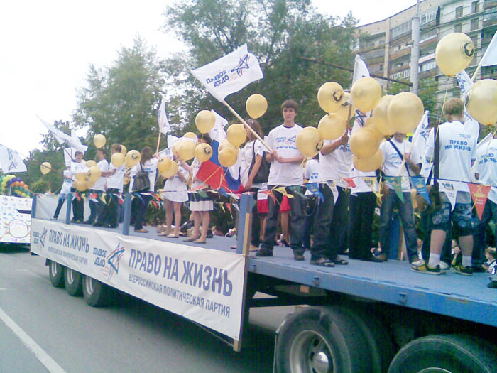 «ПРАВОЕ ДЕЛО» оказалось единственной политической партией, принявшей участие в торжестве. В ходе праздничного шествия активисты партии, кроме всего прочего, стремились привлечь внимание жителей города к проблеме детского алкоголизма
