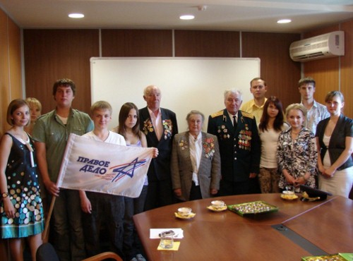 В День Памяти (69-ая годовщина начала Великой Отечественной Войны) активисты молодежного крыла партии «Правое Дело» встретились с ветеранами войны и трудового фронта. Молодые актвисты встретились с ветераном войны полковником в отставке Зиновием Ивановичем Шаманаевым, ветераном трудового фронта Галиной Максимовной Раковой и жителем блокадного Ленинграда Виктором Николаевичем Филипповым. В неформальной обстановке за чашкой чая ветераны рассказывали истории о том, как вся страна и каждый из них встретили этот страшный день 22 июня 1941 года. Шаманаев, прошедший войну солдатом минно-подрывного подразделения поделился фронтовыми историями. Со своим взводом ветеран дошел до границы с Финляндией и остался на военной службе после победы над Германией. Все его сыновья и внуки, следуя его подвигу, прошли службу в вооруженных силах, теперь продолжить их готовятся уже правнуки. Галина Ракова, встретившая начало войны в одном из колхозов около г. Тобольска, рассказывала о работе в тылу. Ветеран труда отметила, что в войну им было столько же лет, сколько сейчас молодым людям, пришедшим на встречу. Блокадник Виктор Филлипов рассказывал истории, от которых у участников встречи на глаза наворачивались слезы. «Очень интересно было пообщаться с ветеранами в тесной неформальной обстановке. Старшему поколению всегда есть, что нам рассказать. Другое дело, что современная молодежь не всегда может понять то, что хотят донести до нас наши ветераны. Я считаю, что это неправильная позиция, ведь ветераны Великой Отечественной войны в годы своей молодости пережили такие трудности, по сравнению с которыми наши современные неурядицы просто несравнимы», - сказала участница встречи Юлия Стафеева Руководитель молодежного крыла регионального отделения в Тюменской области Игорь Самойлик: «Отдельно хочется поблагодарить наших ветеранов за то, что они находят в себе силы и мужество поднимать в памяти те события, которые им пришлось пережить. Их подвиг стал уроком для многих поколений. Пусть такие события больше никогда не повторяться, под таким девизом и закончилась наша очередная встреча».