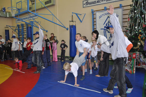 Праздничное представление открыли Дед Мороз и Снегурочка, вместе с ребятами они зажгли главный символ Нового года – ёлку. Затем свои показательные выступления представили спортсмены динамовских секций самбо и художественной гимнастики, воспитанники детского цирка Тулы.