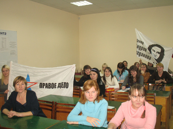 В международный День прав человека, который отмечается 10 декабря, в Удмуртском государственном университете (г. Ижевск) прошла встреча студенческого актива с председателем регионального отделения в Удмуртской Республике Всероссийской политической партии «ПРАВОЕ ДЕЛО» и Центра Андрея Богданова Раисой Солонинко. Она рассказала студентам об основных положениях Всеобщей декларации прав человека, признанной почти в ста странах мира и отражающей взаимозависимость гражданских, культурных, экономических и социальных прав личности.