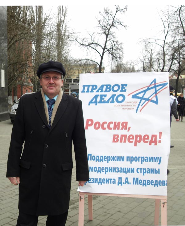 «Россия, вперед!». С таким зажигательным лозунгом сторонники всероссийской политической партии «Правое дело» вышли на улицы Воронежа. Акция с одноименным названием стартовала не только в областном центре, но и в сельских районах региона. Активисты партии предлагали воронежцам поставить свою подпись в поддержку программы модернизации страны президента Российской федерации Дмитрия Медведева.