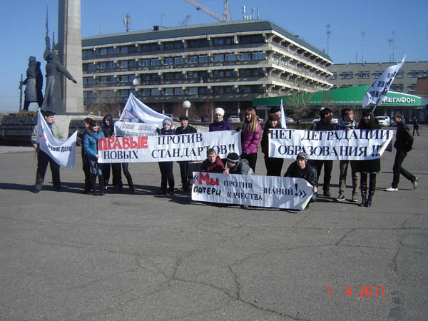 Пикет прошел в рамках общефедеральной акции против ввода нового образовательного стандарта, подготовленного министерством образования и науки.