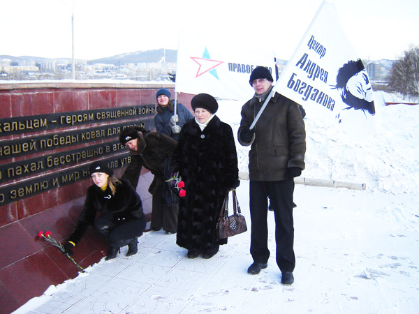 2 февраля 2010 года, в годовщину разгрома немцев под Сталинградом, члены регионального отделения в Забайкальском крае ВПП «ПРАВОЕ ДЕЛО» и регионального отделения Общероссийской общественной организации «Центр Андрея Богданова» во главе с председателем регионального отделения Еленой Чупиковой провели акцию в память о трагических событиях второй мировой Войны. «Правые» почтили память всех не вернувшихся с Войны и возложили цветы у Вечного огня на Мемориале боевой славы.