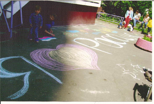 За участие в конкурсах загадок-ребусов, рисунков на асфальте, стихов о России были вручены подарки - воздушные шарики, футболки и бейсболки СПС.