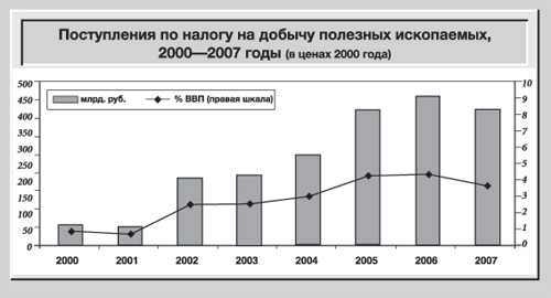 Показательна история с реформой налогов, связанных с добычей полезных ископаемых. В 2001 году обсуждались предложения, суть которых заключалась в том, чтобы опереться на опыт наиболее развитых стран и учесть как минимум шесть коэффициентов, характеризующих условия добычи на нефтяных месторождениях. Однако был выбран максимально простой вариант, при котором объемы налоговых обязательств определяются двумя параметрами: объемом добычи и мировыми ценами на нефть. Ключевым аргументом, определившим принятое решение, было отсутствие уверенности в том, что когда речь идет о миллиардах долларов, то показатели, влияющие на объем налоговых обязательств в российской действительности, нельзя купить за деньги. Выбор был сделан в пользу простой и некоррупциогенной системы, максимизирующей доходы бюджета, обеспечивающей их предсказуемость, а также минимизирующей возможности извлечения административной ренты. Результаты не заставили себя ждать (рис. 3).