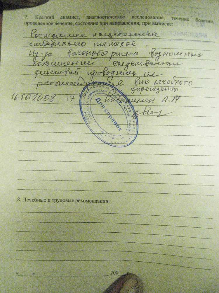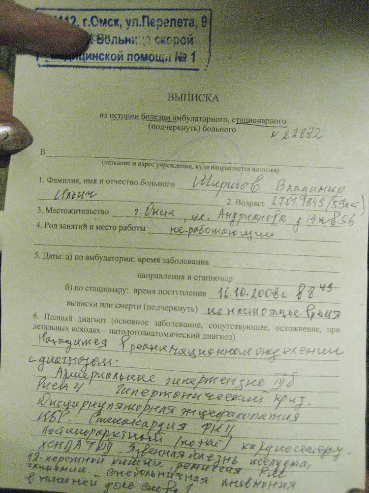 Выписка из истории болезни: