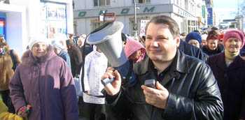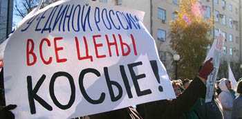 От гастронома тысячи митингующих двинулись к резиденции губернатора Свердловской области Э. Росселя, скандируя: "У "Единой России" цены косые"!