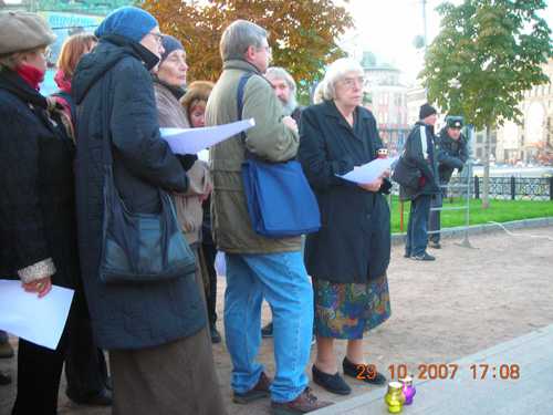 Акция «Возвращение имен» была организована обществом «Мемориал» и проходила в течение всего дня на Лубянской площади у Соловецкого камня в Москве