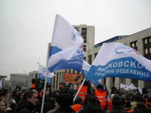 Всего в митинге участвовало более 200 представителей МГО СПС, значительная часть которых несла флаги московского отделения.