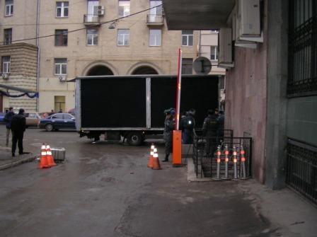 Сразу после начала митинга раздался неимоверный грохот, в котором потонули все слова очередного выступающего на трибуне митинга. Шумовой фон и грохот шли из района Орликова переулка, по проезду примыкающему к проспекту Ак. Сахарова. Я направился в переулок, чтобы выяснить, что там происходит. У самого проспекта шло строительство здания и там работал мощный компрессор с отбойными молотками. Но даже их шум тонул в более мощных звуках, исходящих из переулка. Проезд был перекрыт сплошной шеренгой ОМОНа и стоящими поперек автомобилями. Вглубь проезда никого не пускали, так как даже солдаты стояли зажав уши от нестерпимого звука. Предъявив полковнику ОМОНа удостоверение помощника уполномоченного по правам человека в Российской Федерации я был пропущен к Орликову переулку. В конце проезда стоял трейлер, на котором были установлены два, размером три на четыре метра, черного цвета агрегата.
