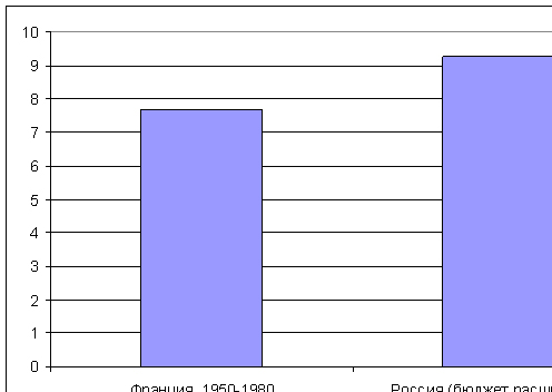 Периоды динамичного роста доходов бюджета были и в других странах мира. Например, темпы роста доходов бюджета (в реальном исчислении) во Франции в 1950–1980-х годах с точки зрения всего, что мы знаем о государственных финансах, были аномально высокими. В подобной ситуации нередко возникает ощущение всесилия государства, того, что оно может позволить себе все. Именно в такие времена формируются масштабные и дорогостоящие расходные программы, на десятилетия определяющие финансовые обязательства государства.