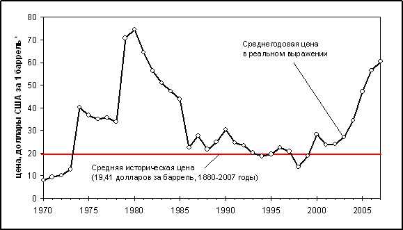 Динамика цен на сырую нефть в длительной ретроспективе,