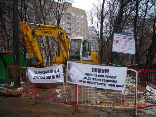 Москва: 23 марта жители нескольких домов по улице Косыгина в Москве провели собрание против возобновления уплотнительной застройки