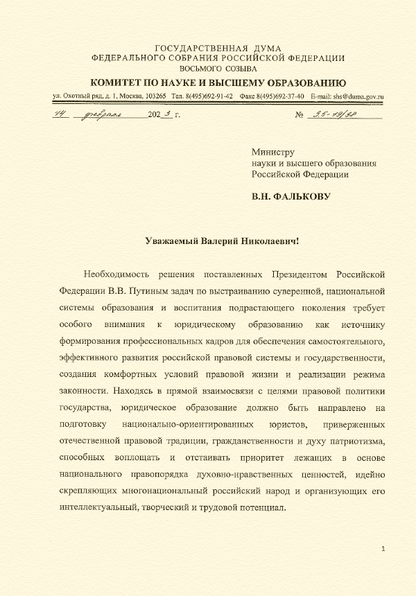 Председатель Комитета Госдумы по науке и высшему образованию, депутат фракции "СПРАВЕДЛИВАЯ РОССИЯ – ЗА ПРАВДУ" Сергей Кабышев обратился к Министру науки и высшего образования России Валерию Фалькову с предложениями по вопросам усиления роли конституционного права России в образовательном процессе и обеспечения консолидированного видения изучения основ конституционного строя на различных уровнях образования.