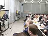 Около четырех тысяч партийных активистов в 66 телевизионных залах различных регионов страны участвовали в видеоконференции и задавали волнующие их вопросы Сергею Миронову.