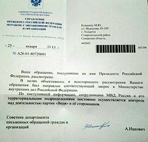 «По поступившей информации, сотрудниками МВД России и его территориальными подразделениями постоянно осуществляется контроль над деятельностью партии «Воля» и ее сторонников». Полный скан письма можно посмотреть . Вероятно, под контролем деятельности подразумевается беспредел полиции в , , , и многих других городах России? А полицейских по Москве за лидером партии «ВОЛЯ» Светланой Пеуновой и над ее загородным участком в Самарской области — это тоже «осуществление контроля»?