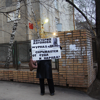 «Виктория Антонова и журнал «Дело» скрываются от суда и народа?», «Дело» скрывается от суда — значит, оно виновато?» - гласили лозунги пикетчиков. Пикеты привлекли внимание и редакции, и суда. Кто-то выходил посмотреть на лозунги вблизи, кто-то пытался рассмотреть пикетчиков из окон, некоторые беседовали с активистами. Но лично Антонова так и не явилась. Уехала к родственникам на время суда в Октябрьск? Напомним (), сейчас в Октябрьском районном суде рассматривается иск к журналу «Dело. Экономическое обозрение». Судья Лещенко Л.А. затягивает рассмотрение дела по существу уже почти 5 месяцев. Кроме того, налицо ее предвзятое отношение к стороне истца и попустительство к стороне ответчика. Она все больше требует доказательств со стороны истца, а не с ответчика, как должно бы быть по закону. Более того, судья выставила с открытого заседания пришедших слушателей, что противоречит законодательству. Об этом говорят жалобы, поданные после заседания адвокатами Пеуновой в . Позднее еще три жалобы в те же инстанции подали граждане, которых буквально выставили из зала суда. Самарцы в чисел прочих ставили вопрос о . Кроме того, сейчас проходит сбор подписей под обращением к судье Лещенко, в котором граждане просят судью не идти на поводу у нечистоплотных адвокатов, непорядочных СМИ и заказчиков «черного пиара».