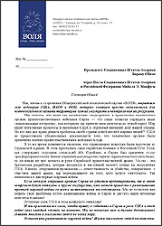 Партия "ВОЛЯ" обратилась к Обаме и Путину по поводу Сирии