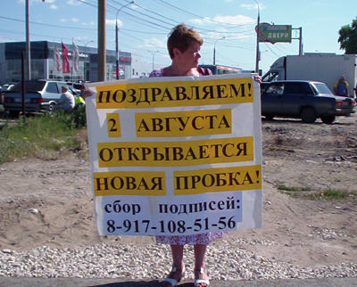 Содержание ее плаката вызвало бурное одобрение сотрудников ГИБДД. Солидарные с женщиной автомобилисты сигналили ей, махали руками и всячески поддерживали ее. Ведь они, как никто иной, в этот день на себе прочувствовали «заботу» руководства Самары и области. Дорогу то и дело переходили покупатели, люди, желающие посмотреть на «звезд», выступавших на открытии, просто любопытные граждане.
