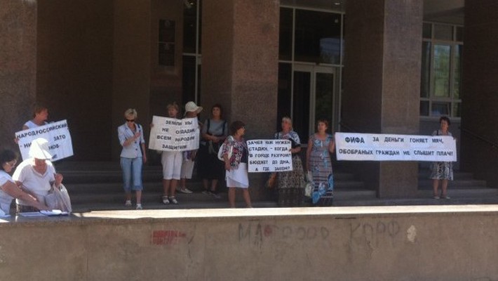 Сегодня у здания Главного управления организации торгов (ул. Скляренко, 20) состоялся пикет против строительства стадиона и инфраструктуры к ЧМ-2018. В акции приняли участие сторонники партии «ВОЛЯ» и жители жилых массивов, попадающих под планируемую застройку.