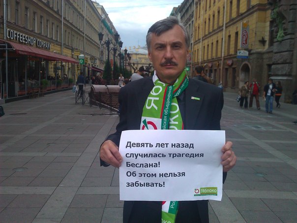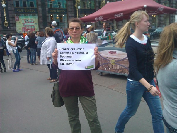 «Девять лет назад случилась трагедия Беслана. Об этом нельзя забывать!» - было написано на плакатах пикетчиков. Одиночные пикеты «яблочники» провели перед Гостиным двором, Домом книги и на Малой Садовой улице.