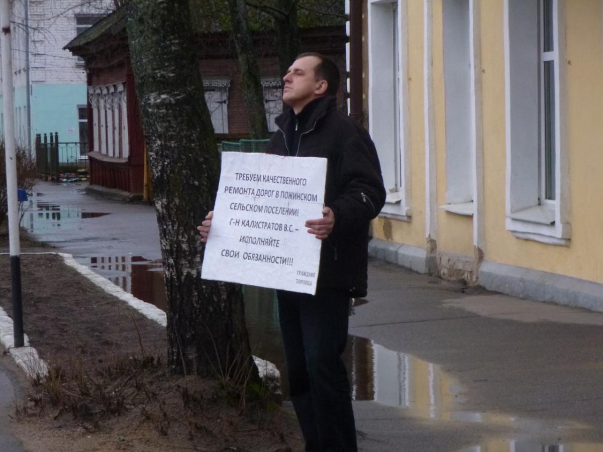 26 декабря активист Тверского ЯБЛОКА Владимир Егоров был задержан во время проведения одиночного пикета за проведение ремонта дорог в Пожинском сельском поселении.