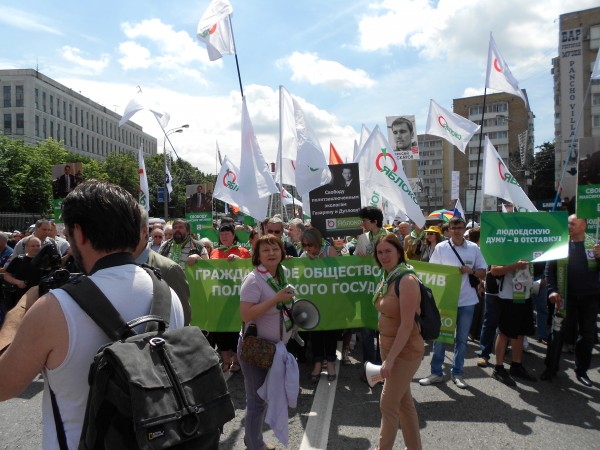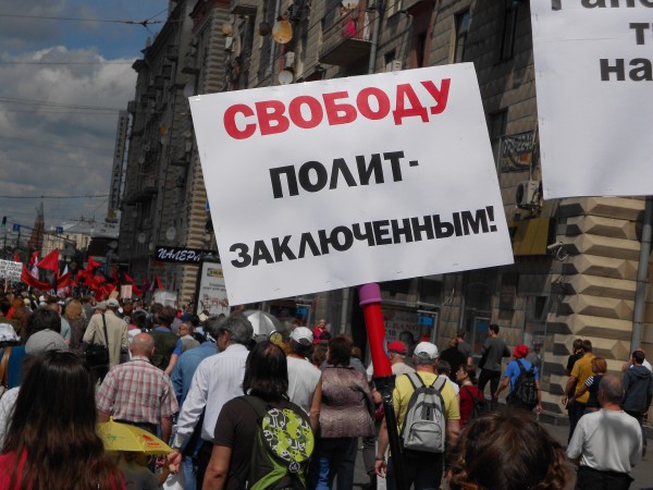 Сегодня в Москве демократическая оппозиция властям, коммунистам, националистам и популистам – партия «ЯБЛОКО» в шествии в защиту политических заключённых и преследуемых по политическим мотивам россиян.