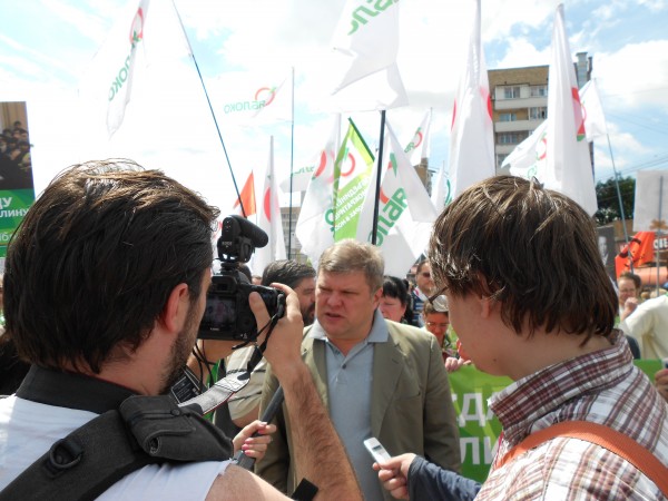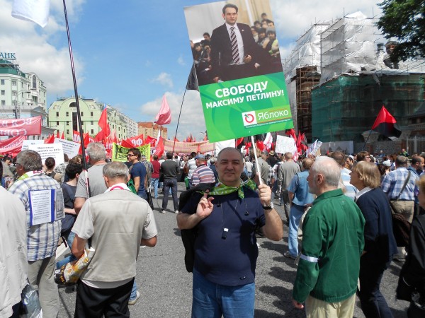 Двинулись! На Кремль! Во главе колонны Сергей Митрохин и член Политического комитета «ЯБЛОКА», известный правозащитник
