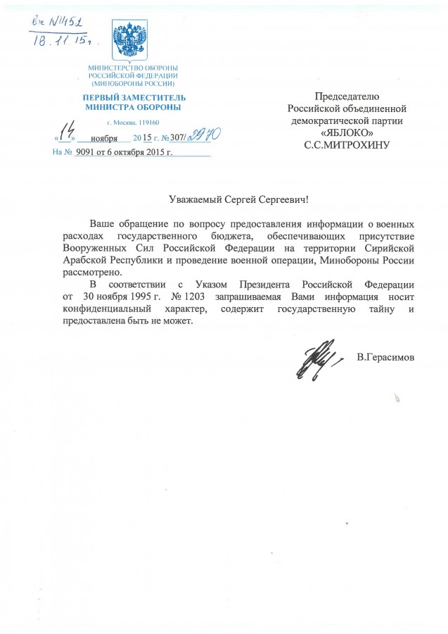 Российское начальство отказалось предоставлять обществу данные о том, сколько бюджетных денег оно решило направить на финансирование сирийской авантюры.