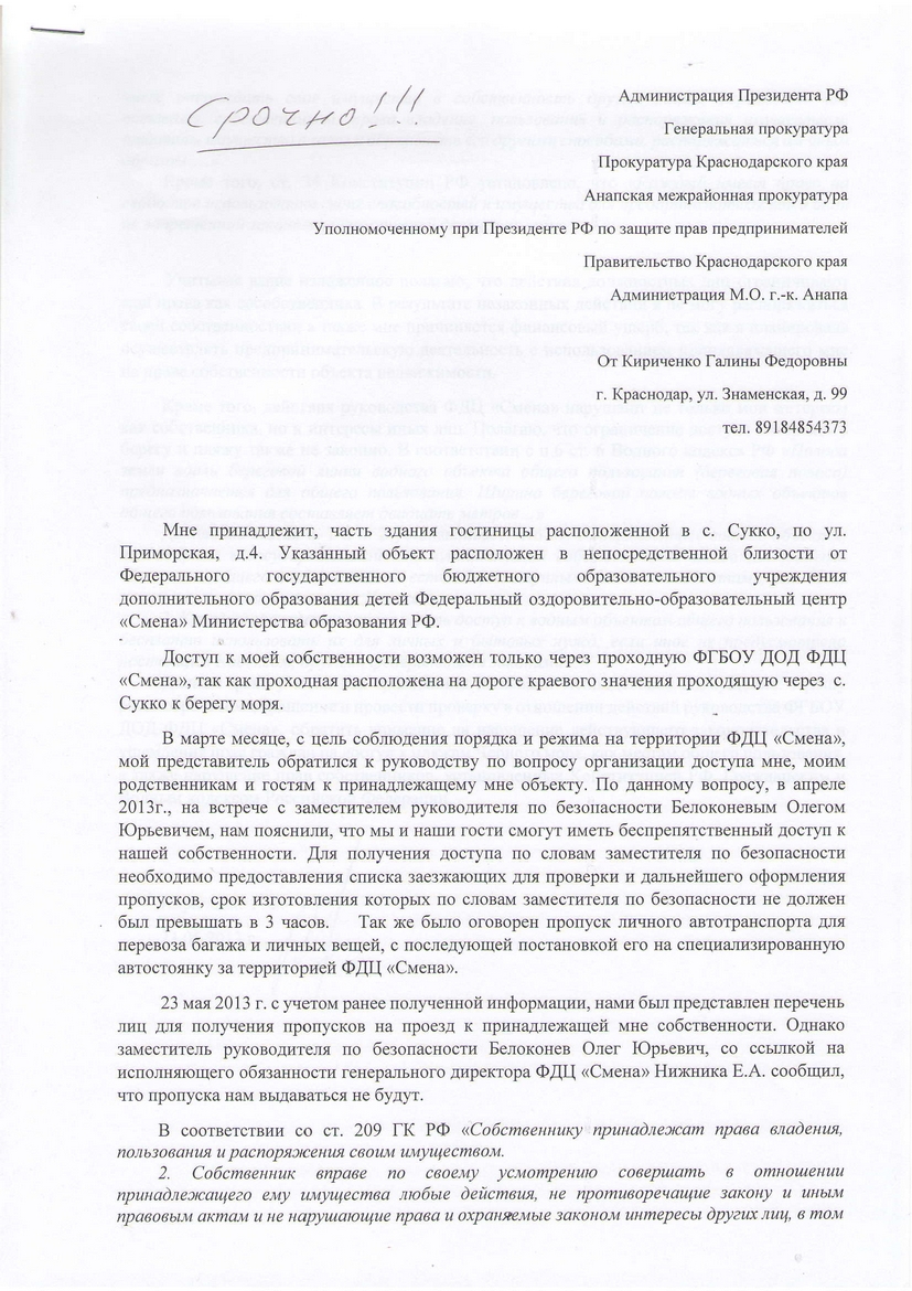 И, как мне сообщили жители Сукко, родной брат Белоконева - зам. генерального директора по безопасности "Смены" Белоконев Олег Юрьевич, который спокойно говорит - "Мы сделаем все, чтобы все нам (государству) отдали.