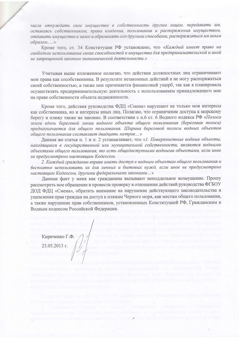 Мне позвонили в первой половине дня – сообщили, что «Смена» начала отгораживаться от «общественного пляжа» (для него оставили 85 м – на отдыхающих «дикарей» всей России). Сказали, что прибудет казаков штыков сто, администрация и жители поселка.