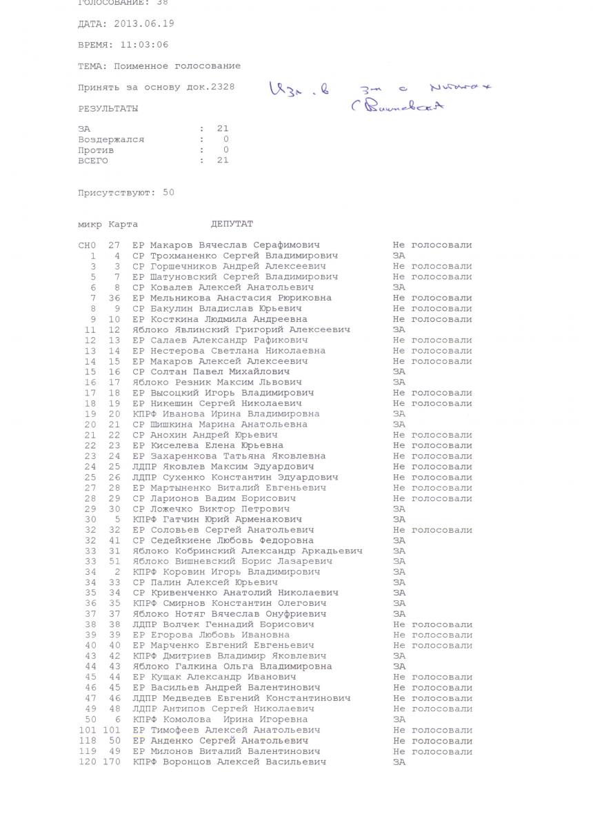 «27 депутатов - «Единая Россия», ЛДПР и два перебежчика из «Справедливой России» весьма прогнозируемо этот закон отклонили», - заключил Александр Кобринский.
