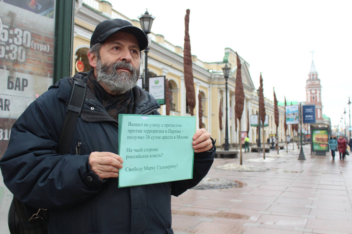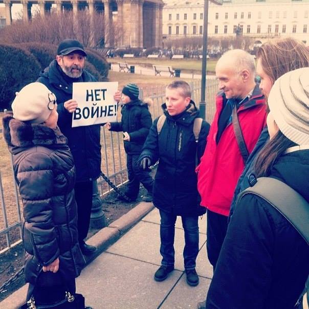 Борис Вишневский участвует в антивоенном пикете на Невском проспекте в 2014 году