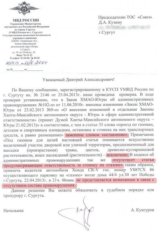 По указанным электронным адресам были направлены три письма с фотографиями, содержащие точные сведения о месте и времени правонарушения. Через пару дней пришел ответ «ваше обращение зарегистрировано», а еще дней через десять я получил конверт с тремя «под копирку» написанными отказами с формулировкой «привлечь водителя не представляется возможным в связи с отсутствием состава правонарушения».