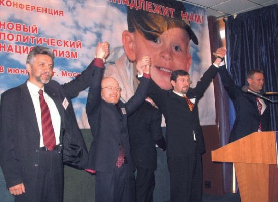 Для справки – известный снимок, где г-н Навальный в трогательном единстве с Беловым (стоит рядом с ним), Константином Крыловым и Андреем Савельевым под лозунгом «Новый политический национализм».