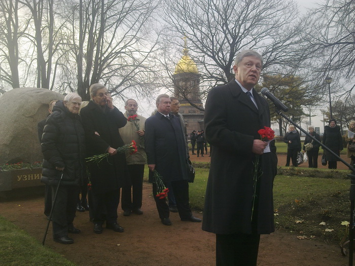 В День память жертв политических репрессий руководитель фракции «ЯБЛОКО» в Законодательном Собрании Санкт-Петербурга Григорий Явлинский посетил траурный митинг на Троицкой площади и Левашовское мемориальное кладбище.