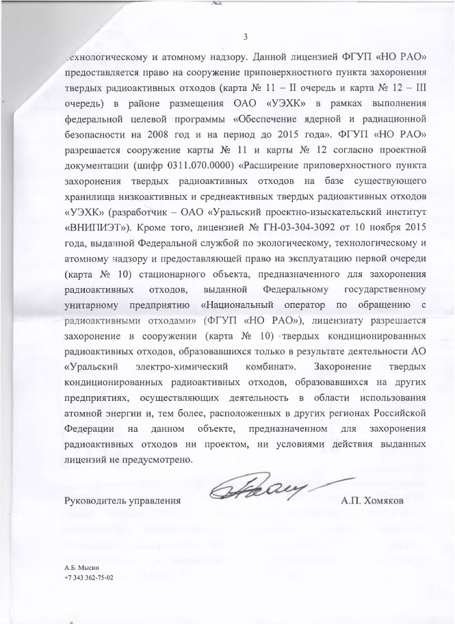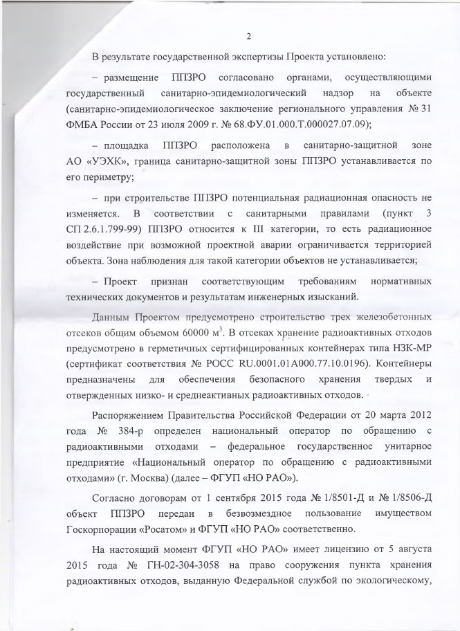 Ответ был получен в декабре прошлого года от Уральского межрегионального территориального управления по надзору за ядерной и радиационной безопасностью. Из ответа следует, что лицензии на ввоз в область таких отходов у национального оператора пока нет. В то же время топ-менеджеры национального оператора по обращению с радиоактивными отходами заявляют, что будут ввозить такие отходы из Ростовской области.